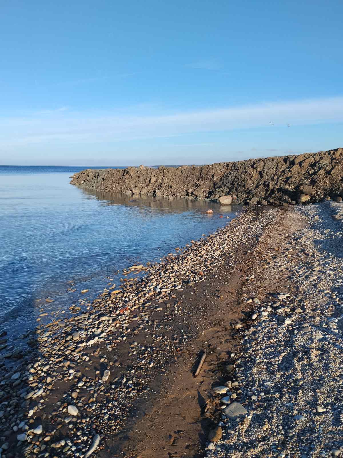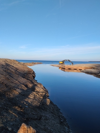 На прошедших выходных ездил в Силламяэ с семьёй, гуляли по променаду. В районе устья реки, где лодочные гаражи рыбаков, была красивая каменная гряда (мол), которую зачем-то засыпали землёй. В самом устье сделали деревянный настил. Похоже, причал для лодок. Так же, непонятна цель засыпки красивой каменной гряды, как части променада, поскольку, штормовые волны размоют эту землю за считанные минуты. Кстати, каменная гряда и защищала устье реки от этих волн.