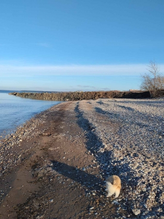 Ну и напоследок из неприятного. Моя собака породы чихуахуа вляпалась в мазут, не доходя до гряды, а я испачкал новую куртку. Почему на пляже мазут, не понятно.